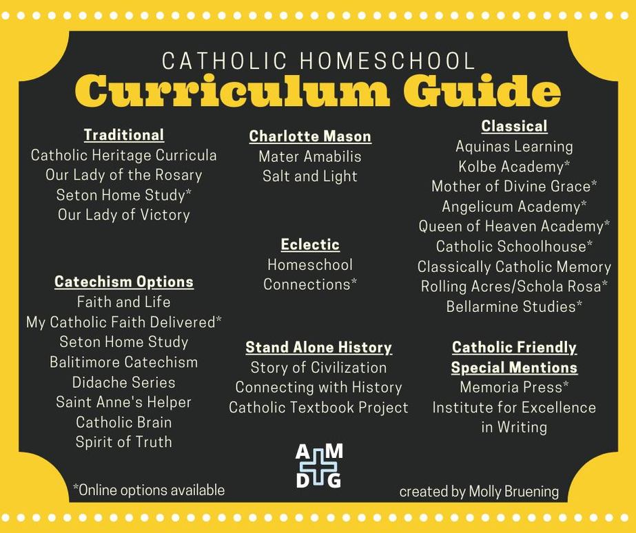 Heart of Mary Educators is a local group and community of Catholic homeschoolers, but during this time while many parents are looking into homeschooling for the first time, below is some information from another former HOME member giving a good overview of Catholic curriculum options.